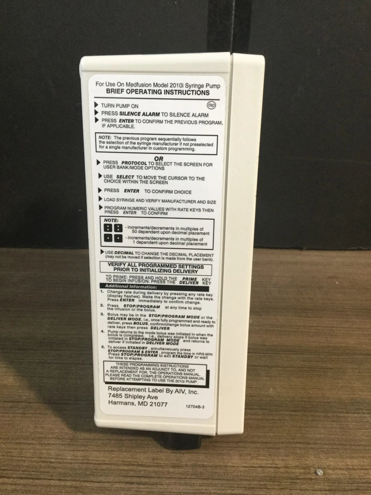 AIV 12704B-1 SYRINGE INFUSION PUMP