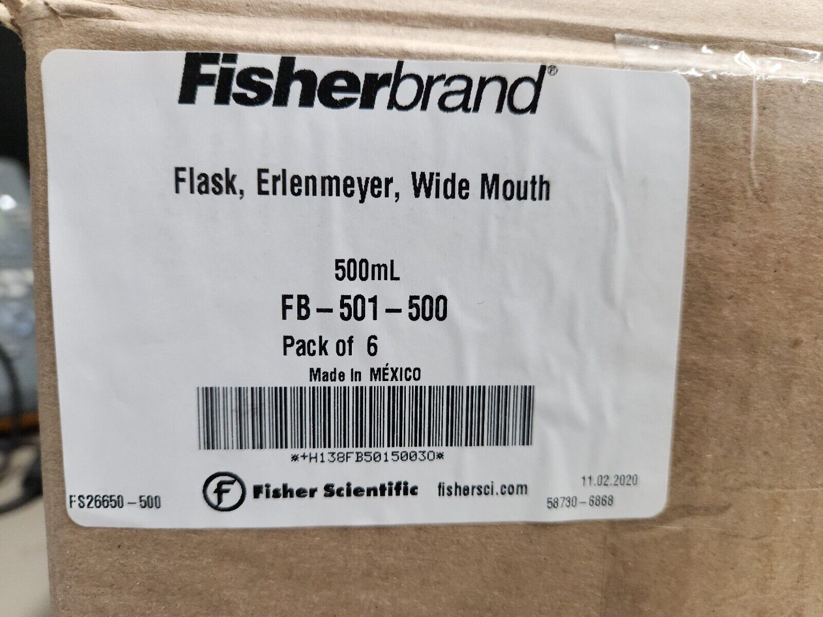 FISHERBRAND FB-501-500 FLASK ERLENMEYER REUSABLE GLASS WIDE MOUTH PACK OF 6