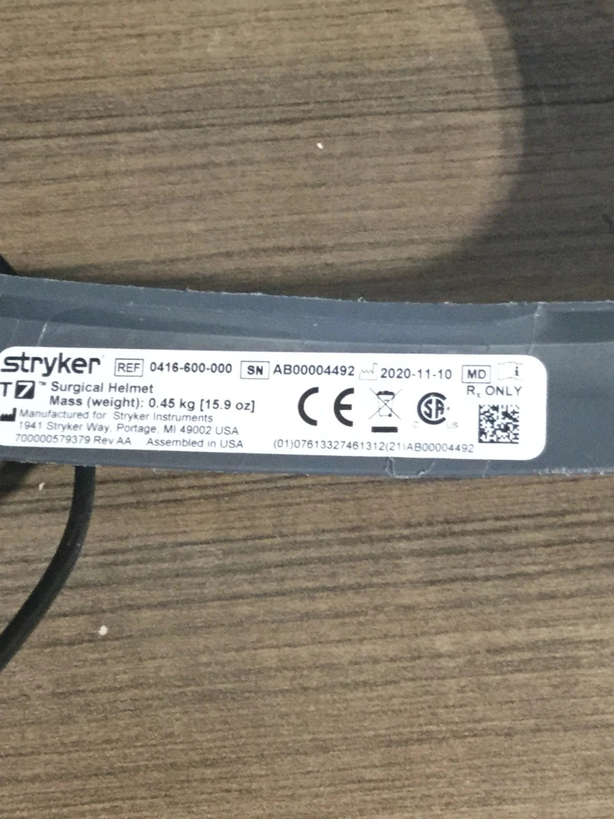 For Sale is (1) STRYKER 0416-600-000 T7 SURGICAL HELMET